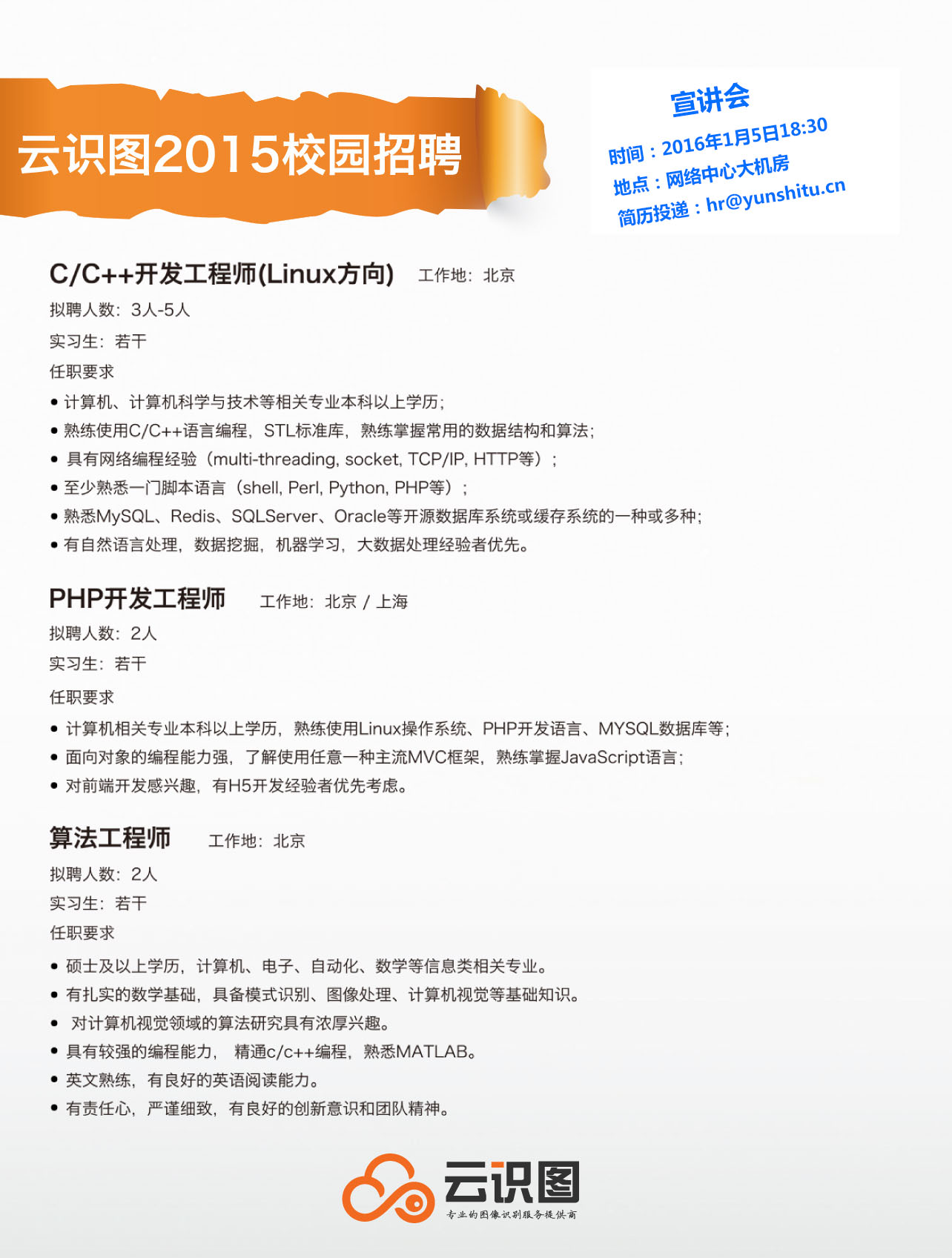 云识图公司 的宣讲会,欢迎大家参加!